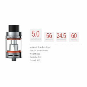 TFV8 Big Baby é a evolução do atomizador TFV8 Baby, agora com capacidade de 5.0 ml. Apresenta sistema de fluxo de ar redesenhado após cálculos e otimizações precisas.