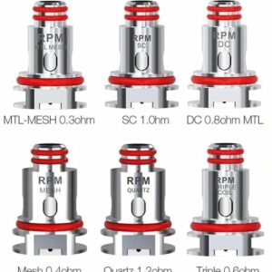 A bobina de reposição SMOK RPM 40 é perfeitamente compatível com o kit SMOK RPM 40 – SMOK RPM 40 POD . A bobina SMOK RPM 40 possui malha 0,4ohm / quartzo 1,2ohm / SC 1,0ohm / triplo 0,6ohm para sua seleção. As diferentes bobinas atendem às suas diferentes necessidades de sabor ideal ou nuvem densa. 5 peças por embalagem. Basta obtê-lo como peça de reposição.