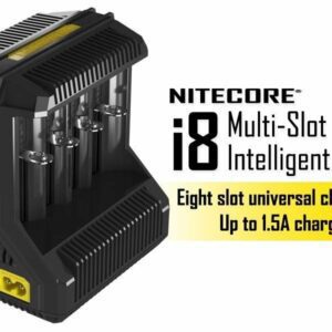 O carregador de bateria universal multi-slot Nitecore i8 é um dos melhores carregadores disponíveis. O Nitecore i8 possui a tecnologia Active Current Distribution (ACD), que distribui a energia entre seus 8 slots de maneira ordenada e permite que a unidade monitore e carregue 8 slots de bateria de forma independente. O i8 também possui design inteligente com a inclusão de duas portas de saída USB que permitem a opção de carregar dispositivos como smartphones e tablets, economizando espaço na sua área de trabalho.