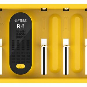 Carregue suas baterias com o carregador Efest iMate R4. O Efest iMate R4 Charger é um carregador de slot quádruplo que pode carregar até uma única bateria 18650 a uma taxa de carregamento rápida de 3,0A ou até quatro baterias 18650 a uma taxa de carregamento de 1,0A. A luz indicadora LED indica quando a bateria está carregando e quando está totalmente carregada. Cada slot é monitorado independentemente para fornecer a carga mais eficiente. O iMate R4 Charger possui proteção contra polaridade reversa, curto-circuito e sobrecarga para maior segurança. O iMate R4 Charger pode carregar muitos tipos diferentes de baterias de lítio de 3,6V / 3,7V, comumente usadas em cigarros eletrônicos, lanternas, ferramentas elétricas e muito mais. O iMate R4 Charger é alimentado por uma porta USB Type-C.