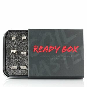 A caixa pronta para bobina Master é projetada eficientemente com três pares de configurações de bobina de alto desempenho que elimina o incômodo da construção de cabos junto com tiras de algodão orgânico pré-cortadas para maior conveniência. Cada bobina é trançada por máquina para um material de construção preciso e consistente, apresentando diferentes tipos de estruturas otimizadas para a criação de sabor e desempenho orientado para o vapor. Cada Caixa Pronta vem em uma caixa portátil eficiente para transportar 12 tiras de bobinas orgânicas e um total de 6 bobinas pré-fabricadas da seguinte configuração: Clapton Fundido, Clapton Paralelo e Triplo Clapton.