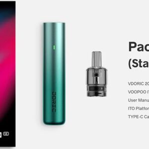 O cartucho VOOPOO ITO fornecido é totalmente compatível com DORIC 20 SE. O dispositivo DORIC Q também é compatível com o VOOPOO ITO Pod e o VOOPOO ITO-X Pod com bobinas ITO.