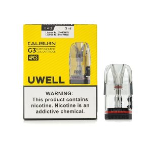 Experimente as cápsulas Uwell Caliburn G3, com uma capacidade generosa de 2 ml ou 3ml e um design de preenchimento lateral fácil de usar que garante recargas fáceis.