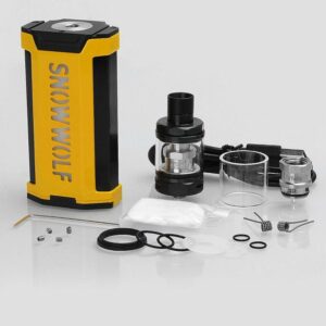 O SnowWolf VFENG 230W TC Starter Kit oferece um par de produtos modernos e de alto desempenho para um conjunto espetacular, implementando um chassi de modificação estrutural com funcionalidade futurista para emparelhar com o novo tanque VFENG Sub-Ohm. O SnowWolf VFENG possui uma liga de zinco e aço inoxidável de alta qualidade com linhas futuristas e elementos de design robóticos para criar um dispositivo visualmente deslumbrante. O epicentro da VFENG encontra-se dentro da tela OLED de 1,3 polegadas, fornecendo interface de usuário amigável com exibição intuitiva, juntamente com vários arranjos para uma experiência de exibição dinâmica. O recurso de iluminação LED localizado na parte traseira do dispositivo dentro do recorte do logotipo SNOWWOLF é totalmente customizável, oferecendo um espectro de cores vibrantes. Alimentado pelo chipset mais recente da série SnowWolf, o VFENG é capaz de 10 a 230W de saída, multidões de configurações e conjunto de controle de temperatura abrangente. Sob o ajuste do controle de temperatura, ele tem o ajuste de Coeficiente de Temperatura de Resistência (TCR), uma tecnologia proprietária para ajustar a resistência de uma ampla gama de elementos de aquecimento a diferentes intervalos. Conduzir todo o sistema são duas baterias de 18650 de alta amperagem (vendidas separadamente), acessadas através de uma tampa da porta da bateria com dobradiça. Emparelhar com o dispositivo é o SnowWolf VFENG Sub-Ohm Tank, fornecendo um chassi de 23mm de diâmetro com 2,8mL de capacidade de suco, preenchimento roscado, enorme dupla e uma família de bobinas versátil. O kit inclui uma bobina S6 de 0,2 ohm com uma faixa de 40 a 120 W, juntamente com uma opção reconstrutiva também. O cabeçote de RBA de dois terminais, de duas postagens, inclui um design de convés de construção amigável, completando a poderosa plataforma com maior versatilidade e opções de desempenho.