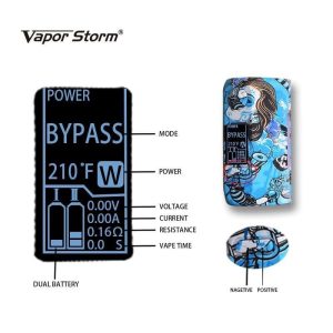 O Vapor Storm Puma, alimentado por duas baterias 18650, é capaz de uma saída máxima de 200W. Além de uma ampla variedade de recursos especiais, o mod box foi projetado com plástico ASB super leve e durável. Com seu design ergonômico e designs individuais exclusivos, o Puma é um mod impressionante e se diferencia de todos os outros mod box existentes.
