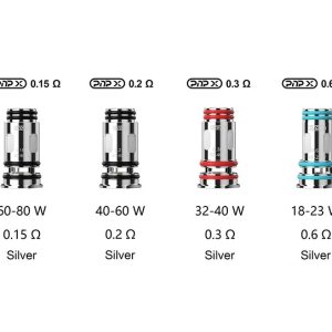 - Argus Pro 2: 0.15 Ohm, 0.2 Ohm, 0.3 Ohm, 0.6 Ohm