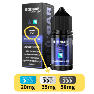 Todos os juices da Nikbar e outras marcas vem na embalagem informando o valor de 20mg, porém o real teor esta na quantidade de setas que esta localizado abaixo dos “20mg”, ou seja, 1 seta = 20mg / 2 setas = 35mg / 3 setas = 50mg.