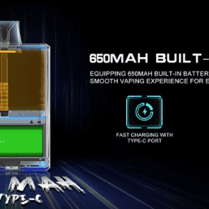 - Tela HD que exibe o nível de bateria e e-líquido