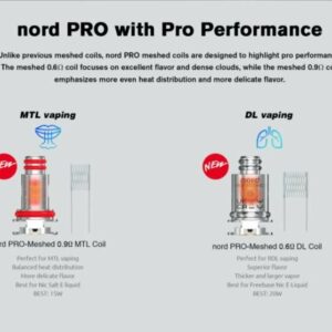 É compatível com as novas bobinas SMOK Nord PRO , feitas de bobinas de malha superiores que oferecem um sabor delicado enquanto proporcionam uma produção de nuvem satisfatória.