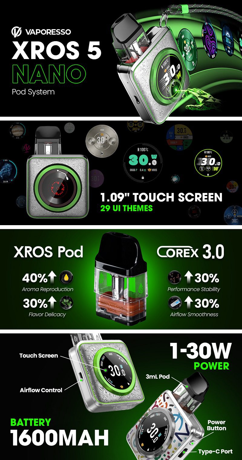 KIT POD SYSTEM XROS NANO 5 1600MAH 30W – VAPORESSO