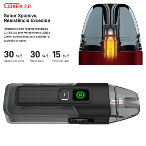 O LUXE X2 utiliza a revolucionária tecnologia COREX 2.0, que combina Morph Mesh e COREX Cotton aprimorados para entregar um sabor intenso e consistente, enquanto prolonga a vida útil dos pods. Integrado com o AXON CHIP, o dispositivo garante um desempenho excepcional, elevando sua experiência de vaporização a novos patamares.