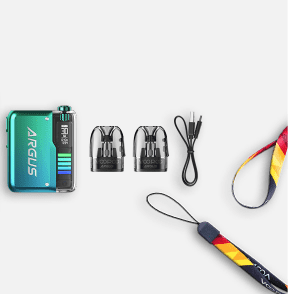 O ARGUS P2 tem uma bateria poderosa que oferece suporte de longa duração para até 30W de potência estável, proporcionando sabor pleno e consistente com o cartucho ARGUS Top Fill de 0.4Ω.