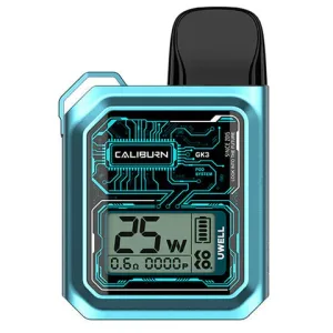 Além disso, inclui cápsulas de 0,6 ohm e 0,9 ohm, garantindo uma vaporização versátil direto da caixa. Fabricado com plástico PCTG durável, equipado com um cordão para portabilidade e com carregamento USB-C para recarga mais rápida, o Caliburn GK3 atinge o equilíbrio perfeito entre estilo, sabor e conveniência.