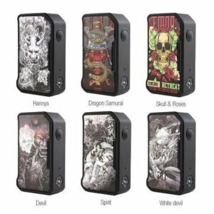 O DOVPO M VV 2 II Box Mod é um mod box bem elaborado com base na saída de tensão, que integra um compartimento de bateria 18650 com duas fendas, saída com base na tensão ajustada via dial na base do Mod M VV 2 II Box e apresenta um modelo altamente detalhado gráfico colorido com texturas em relevo.