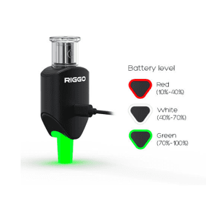 O XMAX RIGGO é alimentado por uma bateria de polímero de lítio de 1000 mAh, garantindo autonomia suficiente para múltiplas sessões antes de necessitar de recarga. O carregamento é realizado através de uma porta USB-C, com uma tensão de carregamento de 5,0V e corrente de 1A, assegurando recargas rápidas e convenientes.